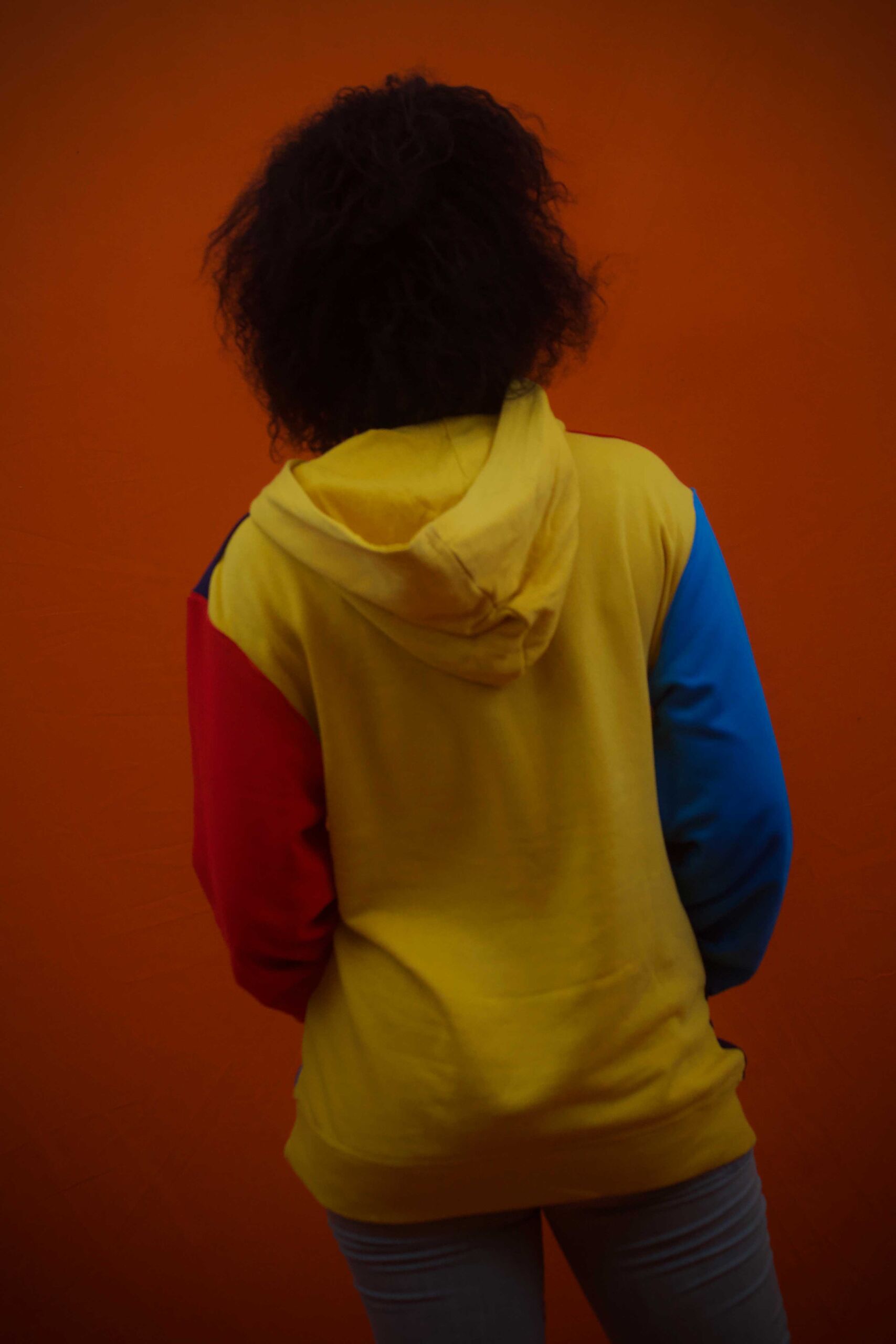Hoodie multicolore Bleu Rouge Jaune à capuche femme.