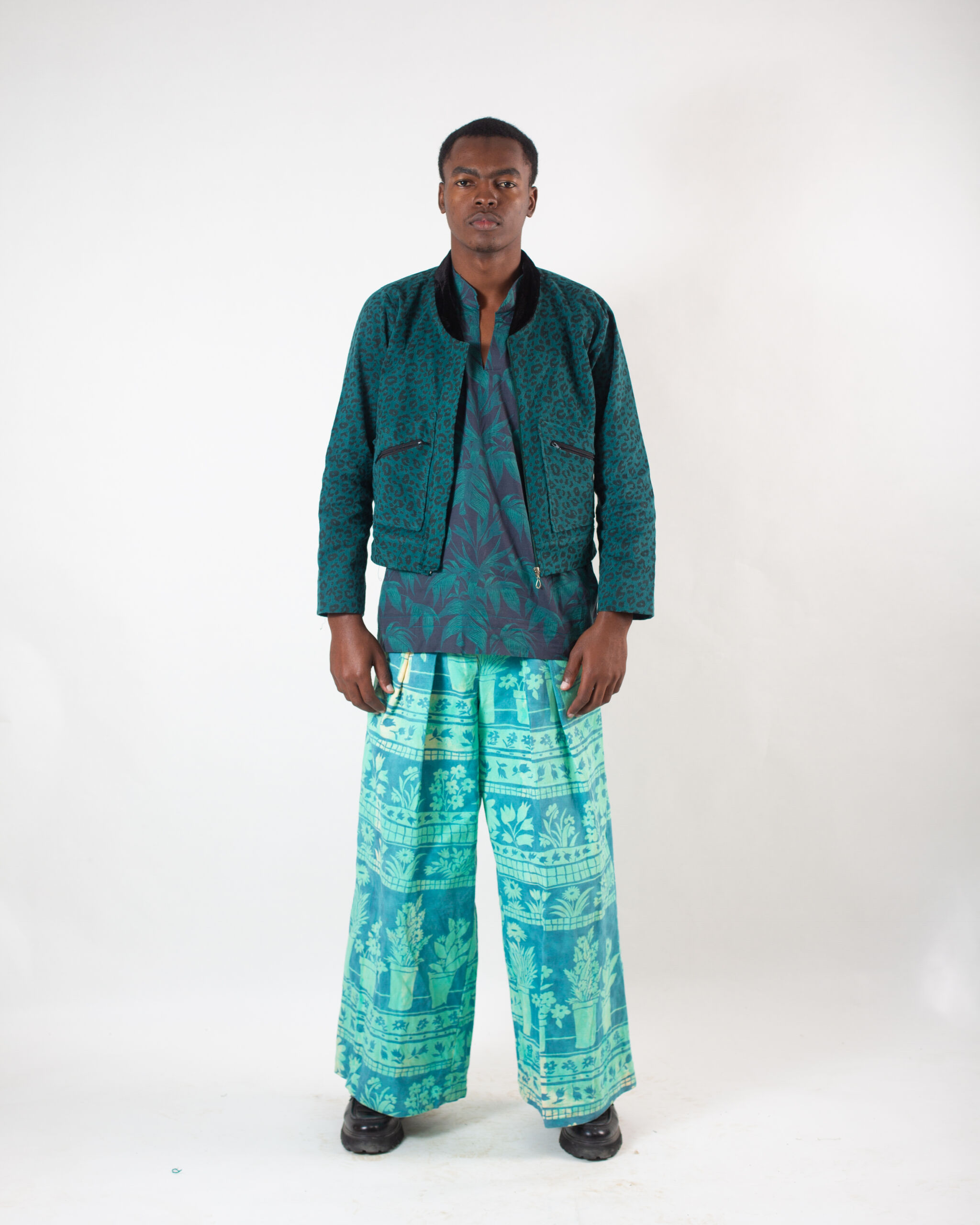 Le Set by Moleer Jean est une œuvre de mode, où chaque pièce raconte une histoire. Le pantalon, peint à la main par le designer Moleer Jean, est une expression artistique unique, transformant un vêtement en toile vivante. Complété par une veste assortie, ce set offre une liberté totale : à vous de choisir votre propre combinaison.