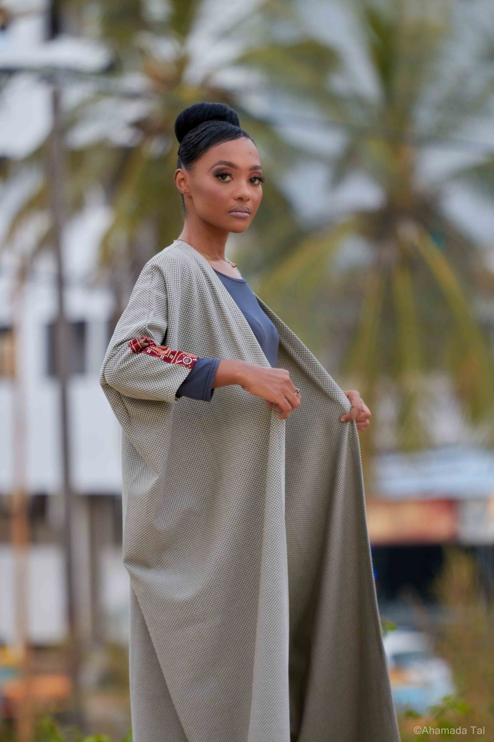 Truliza est un abaya moderne de style kimono avec des motifs en mawuwa (tissu traditionnel comorien).
